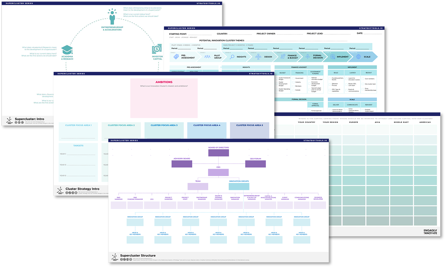 Based on the latest research, but built for hands-on managers, Supercluster leaders, cluster members and stakeholders in the broad ecosystem, these tools help drive the strategic conversation of Supercluster building.
